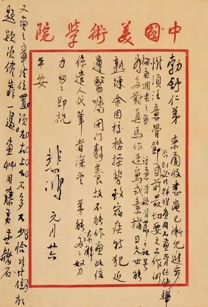 来来往往七八封信,中间徐悲鸿因过度劳累,身体抱恙,血压居高不下,同时伴有慢性肾炎,有一封还是他口述、廖静文夫人代笔回的。